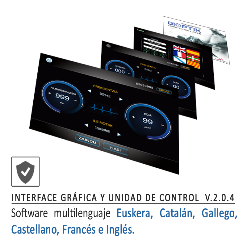 Dioptik, incorpora un spot con 12 filamentos de Diodo de 100w cada uno (1200w/reales) y la posibilidad de trabajar a velocidades comprendidas entre 1hz y los 10 Hz, consiguiendo de este modo acortar los tiempos de los tratamientos asegurando la máxima eficacia lo que se traduce en máxima rentabilidad y amortización.